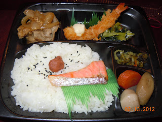 Every month they have a special dish, so we like to order it sometimes to try something new. This one was umeboshi with salmon, root vegetables and shrimp tempura. Delicious. (I don't like umeboshi, so I usually give that to David.)